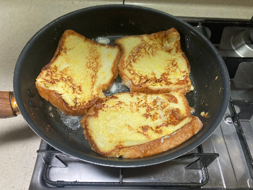 천천히 굽는 것이 촉촉한 프렌치 토스트의 완성도를 높여줍니다.