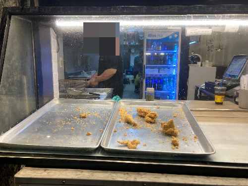 포장손님들과 방문 손님이 많아서 치킨을 튀겨서 쌓아놓는 곳에 치킨이 다 동이 나 있었습니다.
