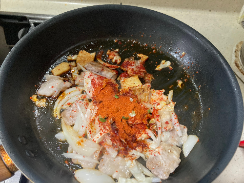 마지막에 스프와 고춧가루를 넣고 다시 볶다가